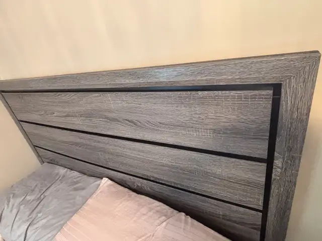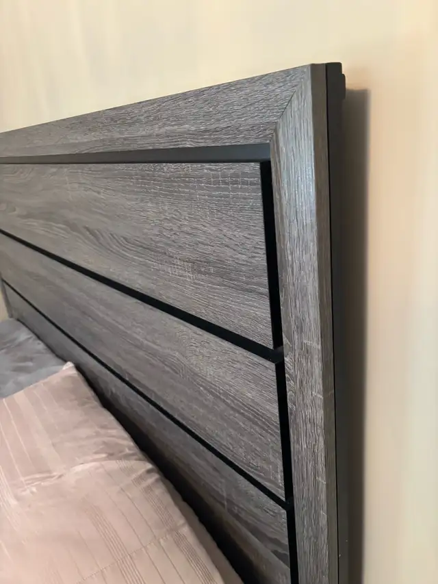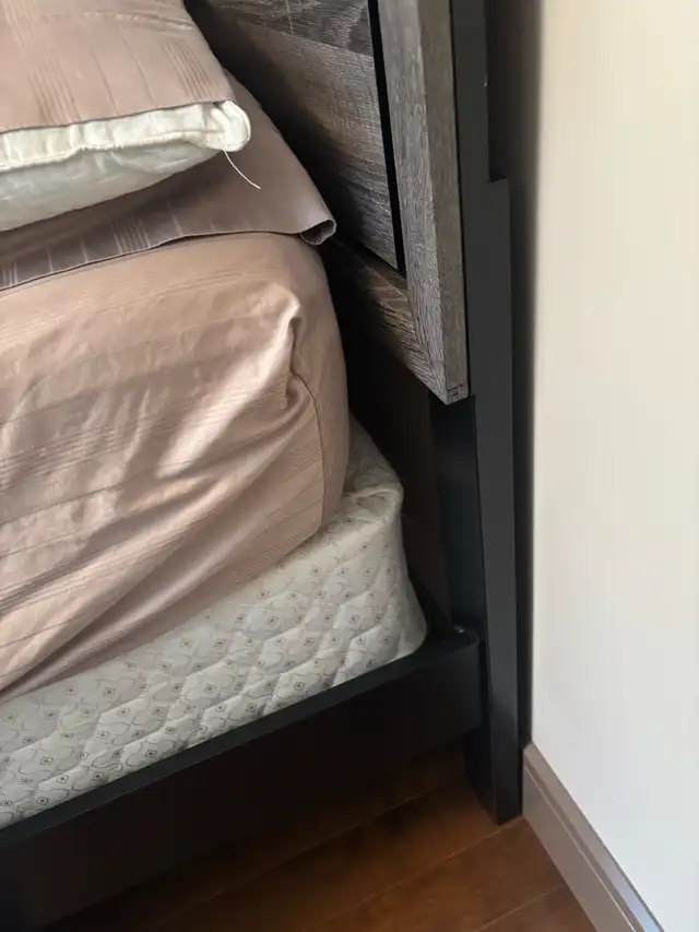 Selling Queen size bed frame (no mattress or box spring) bed frame brand new purchased 3 months ago at the brick (I still have the receipt) NEVER USED.
