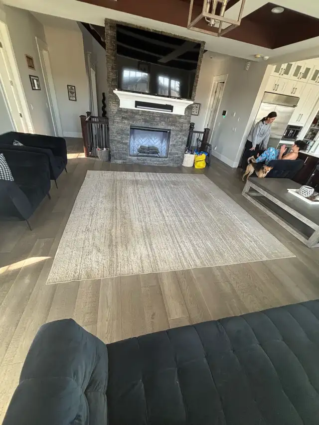 10' x 10' area rug. Needs cleaning, but no holes.