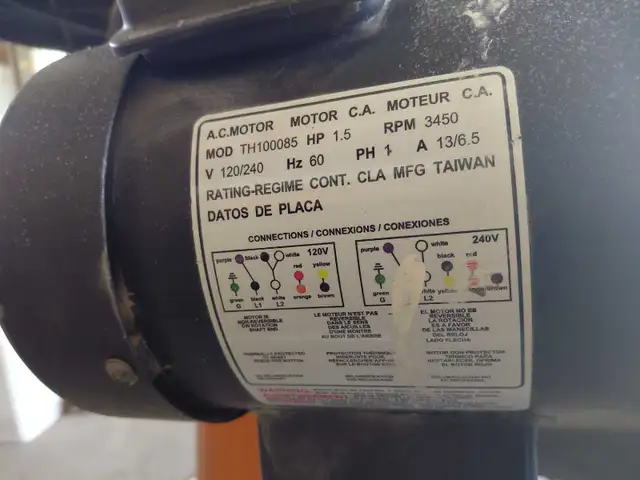 This is a Ridgid TS3650 table saw with a 1.5HP motor, in used but good condition, perfect for any woodworking enthusiast. This robust saw features a sturdy build and precise cutting capabilities.