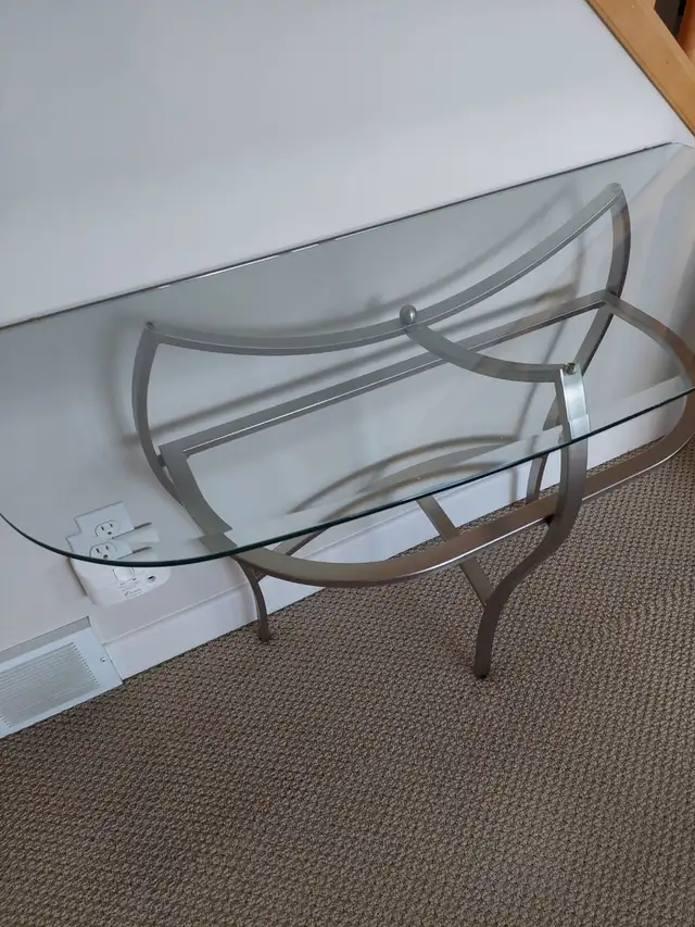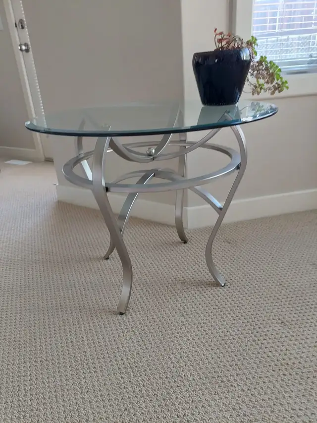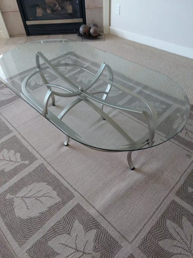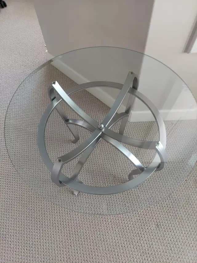 I am selling 3 elegant glass top coffee tables in excellent condition ( like new ) Brushed nickel finish legs . Glass comes off for easy transportation. Purchased for $ 850 from Nordesign .