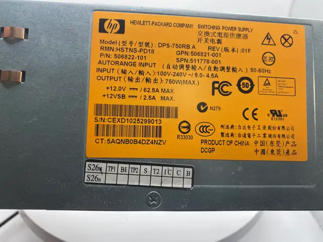 Model: DPS-750RB A (HSTNS-PL18 / 506822-101)“Common Slot” Server PSU