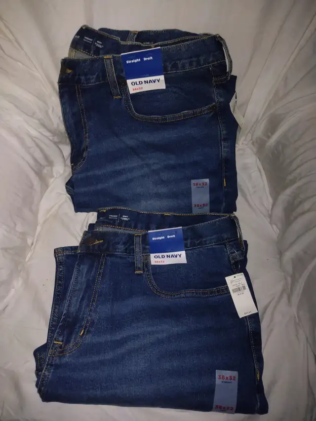 2 pairs of Straight Leg 38 w 32 l, Old Navy Jeans, brand new tags are on them. , $30.00 for both , located in Milton, (416)316-1953