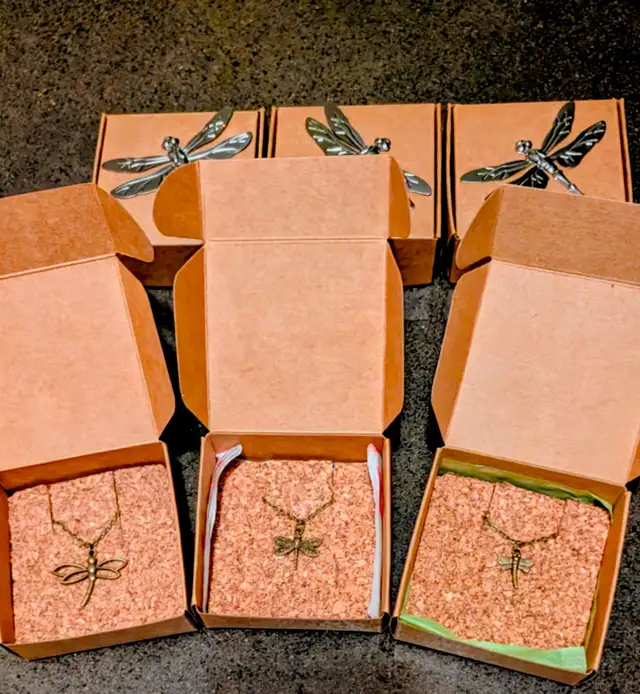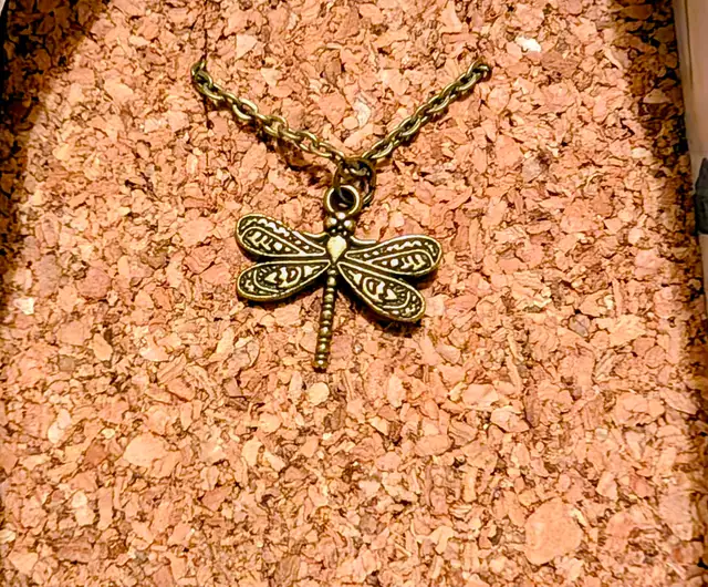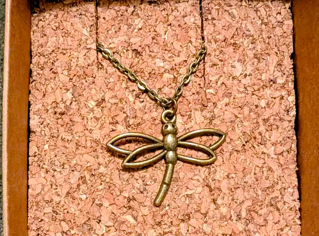 Three New 18" bronze necklace with dragonfly charm new in box.