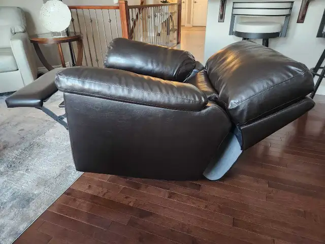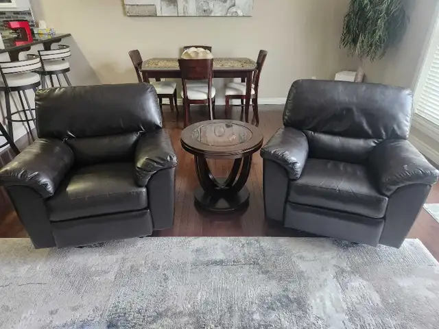 Set of two chairs. Faux leather. Solid steel frames. Manual control. Great shape. One chair starting to wear a bit on edge of arm. TAKE BOTH for only $190. Call or msg anytime (780) 994-1057