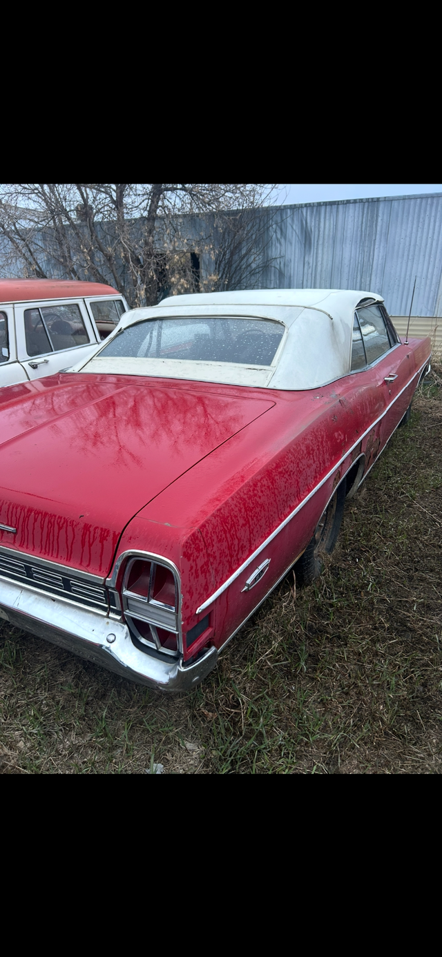 1968 Ford XL convertible . 390 four barrel. Bucket seats. Auto, Stock hub caps. Engine seized from sitting but would likely break free with TLC. Grill is good condition. Needs rear quarter panels replaced but come with replacements ….top and interior in decent shape for its age.pictures tell the story,, more photos available on request..