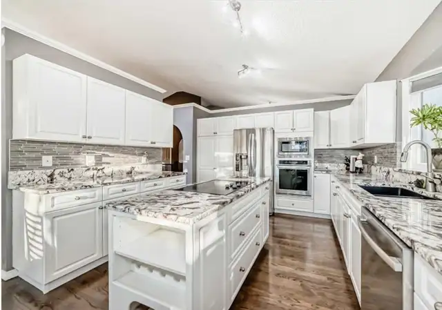 Beautiful, spacious home on a quiet street backing directly onto the golf course. Features 2 bedrooms, 2 full bathrooms, over 2,000 sq ft of living space and an oversized attached double garage. Stainless steel appliances throughout. Located in a great, family-friendly community close to schools, shopping, all amenities, and the lake!! Peaceful, private, and perfectly situated.
