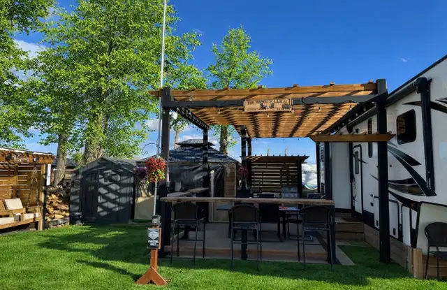 Price $169,000 including 39' Prime Time Crusader and 50 x 50 lot with outdoor kitchen, Gazebo, 13' Pergola, Shed and Custom Coffee/Wine Station