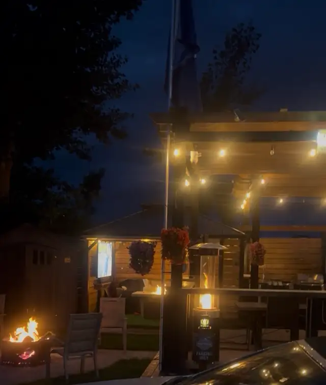 · Beautiful 13ft high Pergola with Edison lights and water mist system for those hot summer days. Full Wrap Around Bar area with Chairs