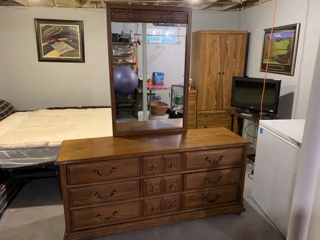 Selling 9 drawer solid wood Kroehler dresser with mirror. Excellent condition. Non smoking house.