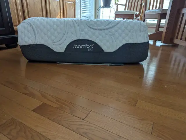 Base/frame is a motorized Motion Perfect II powered by an Ergomotion motor with multiple massage settings and remote control. Plugs into a 110 wall outlet. Adjustable upper body and legs. Serta iComfort EFX mattress is Standard Twin. Measurements are 77” x 38” x 11.75” thick. Made of Carbon Fiber Memory Foam and iComfort Gel Memory Foam for a combination of cooling and pressure relief. The carbon fiber helps channel heat away, while the gel memory foam offers support and comfort. It also includes a base layer of Serta Balanced Support Foam for added comfort and a Serta Foam Core for durability. Plus 3 types of leg sets for bed frame.