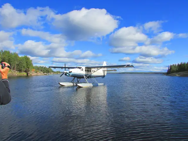 Floatplane transport between Bissett and Shining Falls lodge
