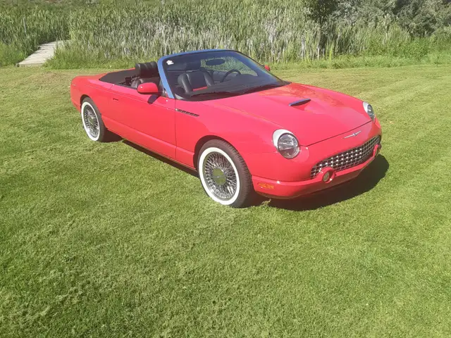Only 21500 km mileage. Comes with hard top, soft top, stand for hardtop, cover for top and car. Two tone interior. Wind deflecter. Custom thunderbird wire spokes plus original rims. Only asking 28500. Call or text 403 866-6876