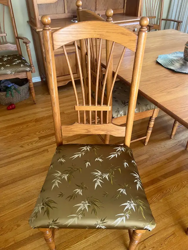 It has 4 cushioned side chairs and 2 hostess/host (with arms).