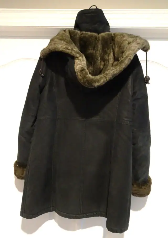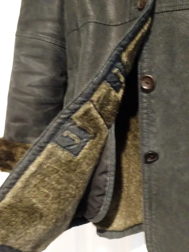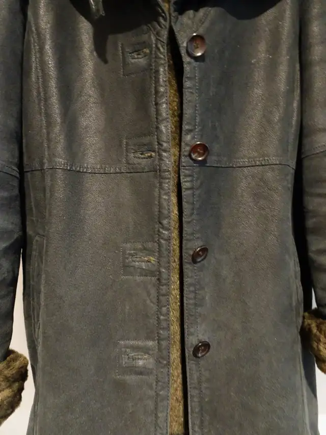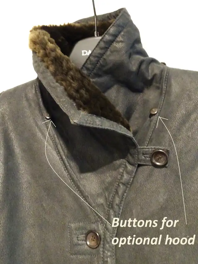 Crafted from premium suede leather and lined with ultra-soft faux fur. The optional fur-trimmed button on hood (images 4 & 5) and fur cuffs (image 2) add a vintage charm, while the button-up front design ensures comfort and elegance for any occasion.