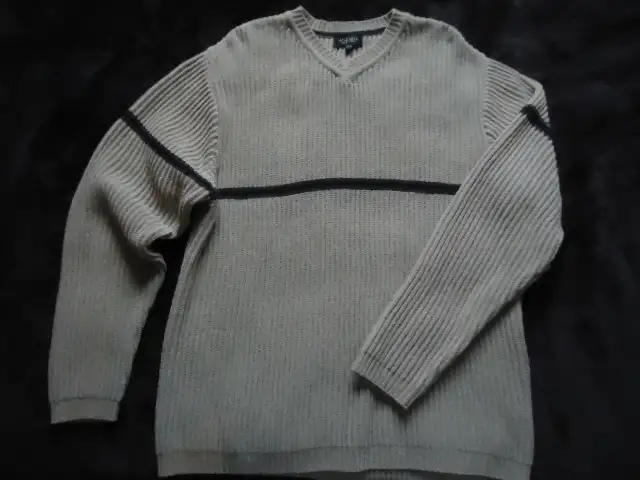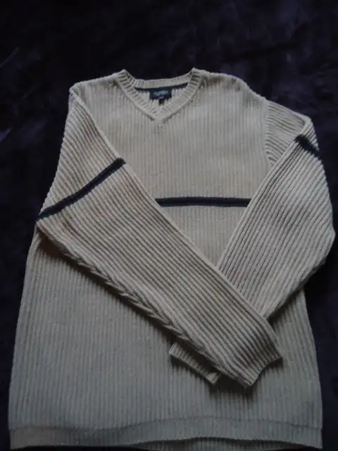 Soft Olive/tan color sweater, thick Acrylic material. very nice heavy quality sweater.