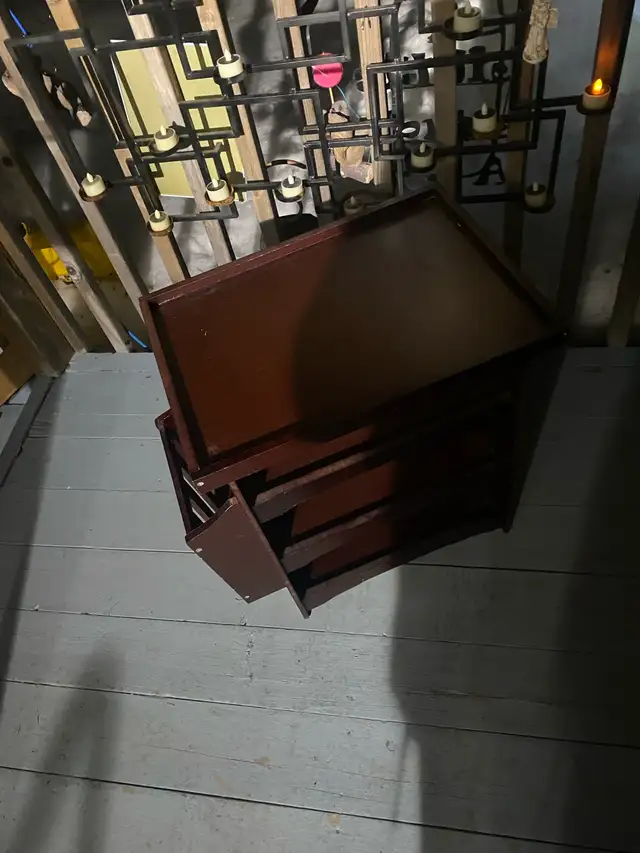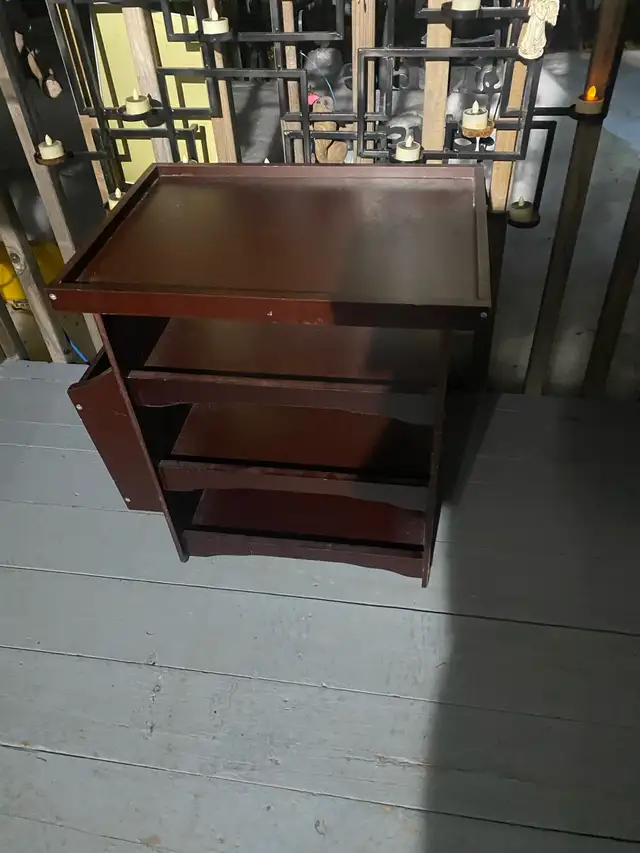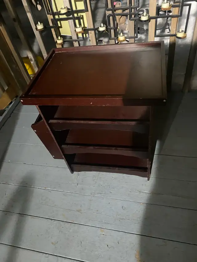 END TABLE UNIT. VERY BEAUTIFUL. DARK BROWN IN COLOUR. EXCELLENT CONDITION. H - 22” X L - 22” X W - 14”.