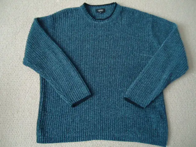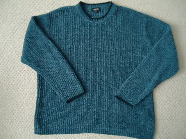 Soft blue sweater, thick Acrylic material. very nice quality sweater.