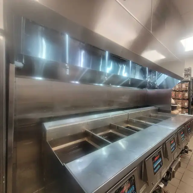 Use high-pressure power washers, scrapers, and degreasing chemicals to clean hoods, vents, and fans.