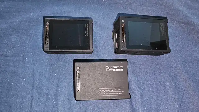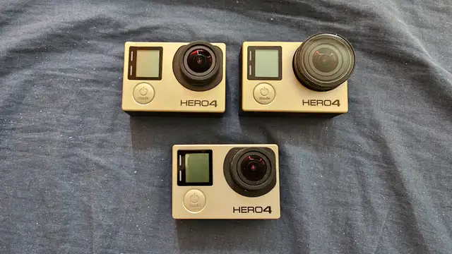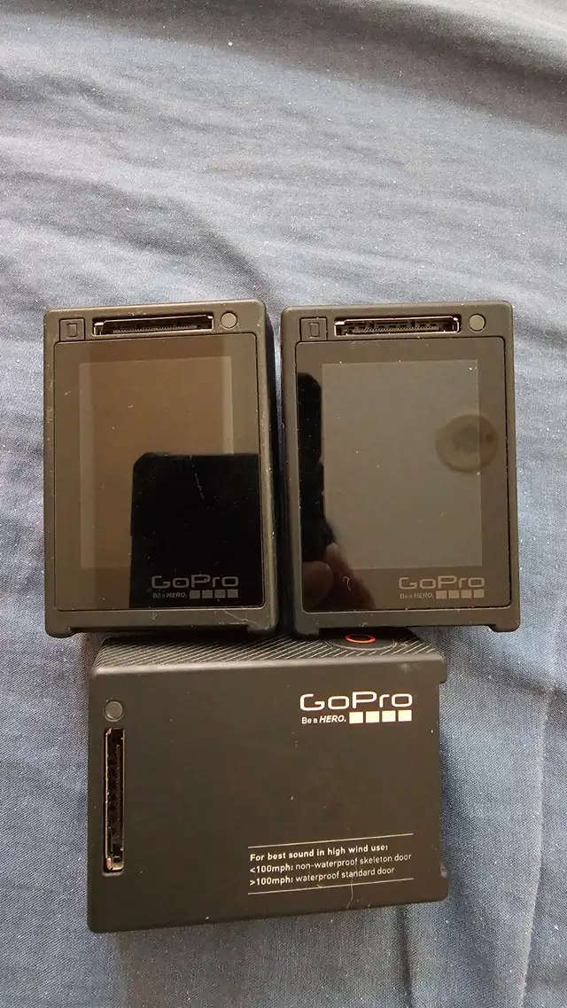 I'm selling my GoPro Hero 4 you're getting all 3 of $100. All 3 for price of 1 stupid crazy cheap Some people are selling each GoPro for $100. You're getting all 3 gopros for $100 Stupid, crazy, cheat come with 2 battery