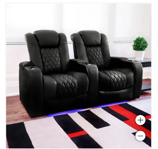 Black leather home theatre loveseat