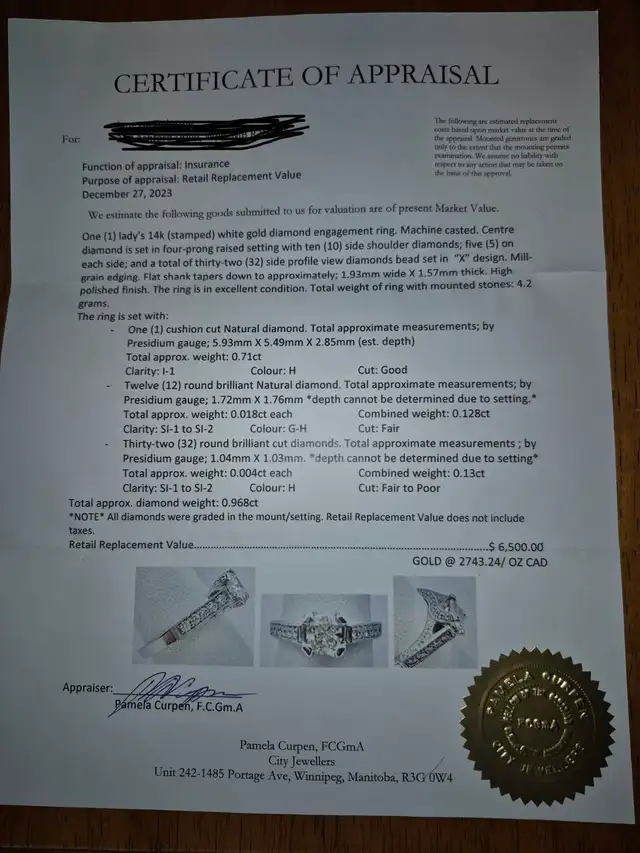 Selling a brand new engagement ring that has never been used. Please contact 204-898-0986