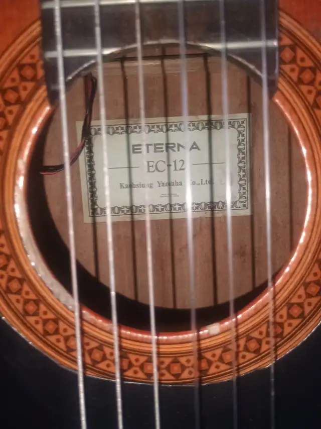 Yamaha eterna classical guitar with active preamp nice low action very responsive and resonant the guitar is at least 35 years old has a bit of cosmetic damage but it works well call or text 416-285-0719 or email
