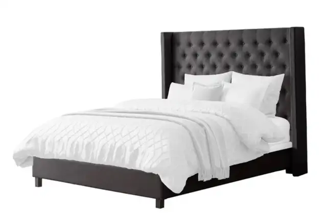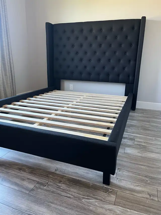 Brand new king or queen sized bedframe with slats in charcoal grey