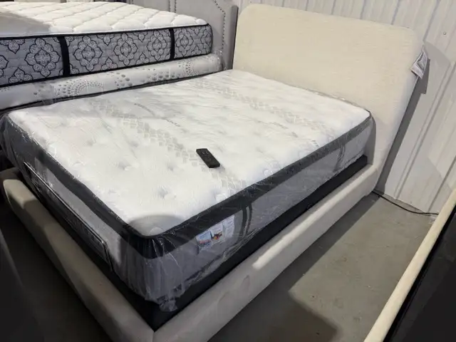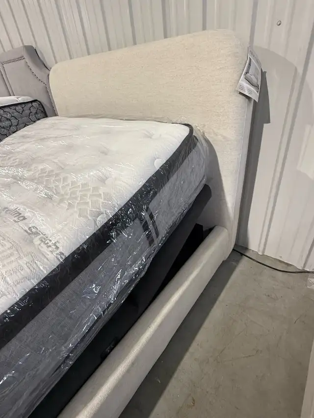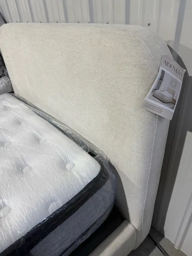 Double / Full sized adjustable bed package Complete with Cream Aiden & Ivy fabric bedframe (85”L x 60.6”W x 48”H)