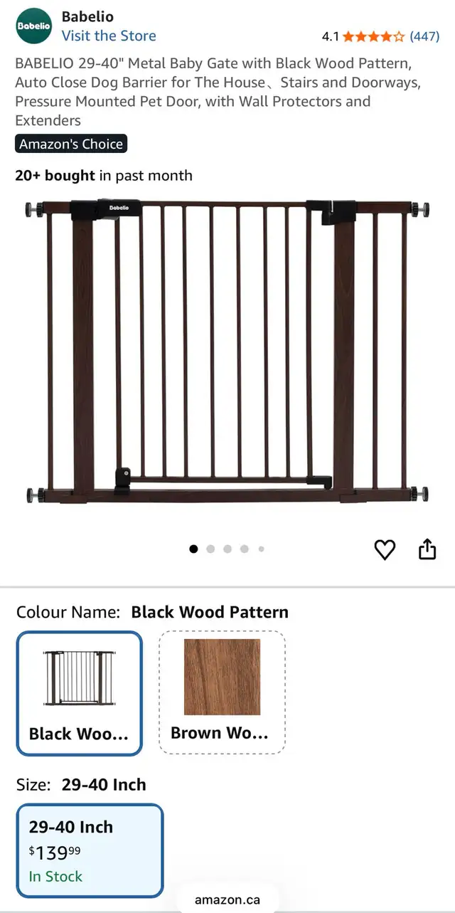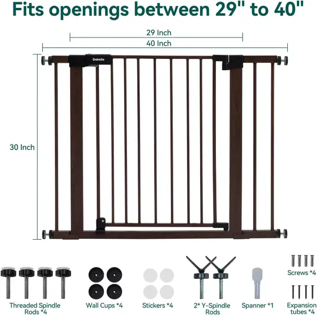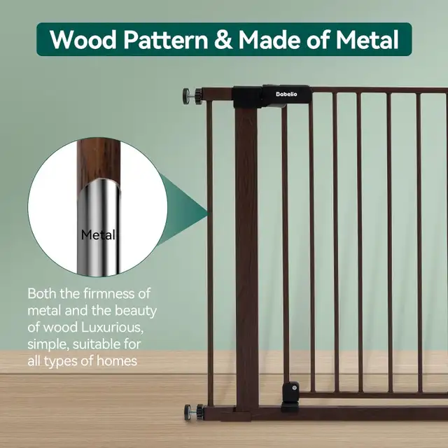 Babelio Adjustable Pressure-Mounted Baby Gate – Black Wood Pattern