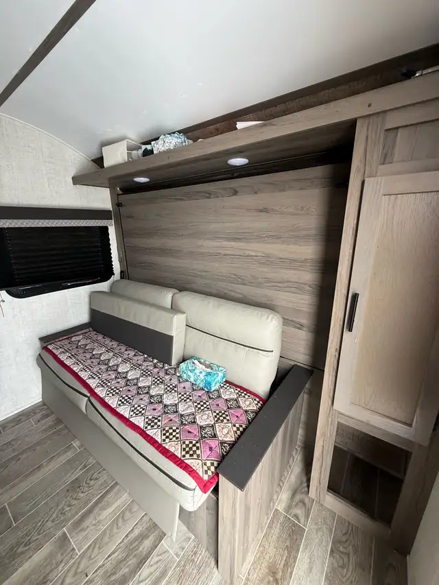 24ft, sleeps 6, 2 bunks, table bed and double Murphy bed. Full bathroom. Fridge, microwave. 15 gallon water tank. Only used a few times. Must sell. Asking 29500 OBO call Jeff at 613-281-7058