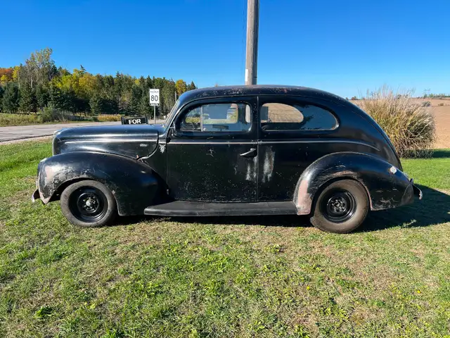 1940 Ford Tudor Standard (Spring Special) Solid body and frame, mustang 2 IFS, manual steering, 327 SBC , T5 stick, power brakes, 8.8 rear axle, new wheels and tires, new glass all round, new interior and wiring, Vintage AC and heat, drives nice great patina. Located in a heated Garage and can be viewed any time Call Rick (416) 896-8006 Tottenham Ontario Willing to keep in storage untill spring