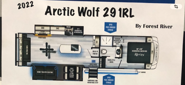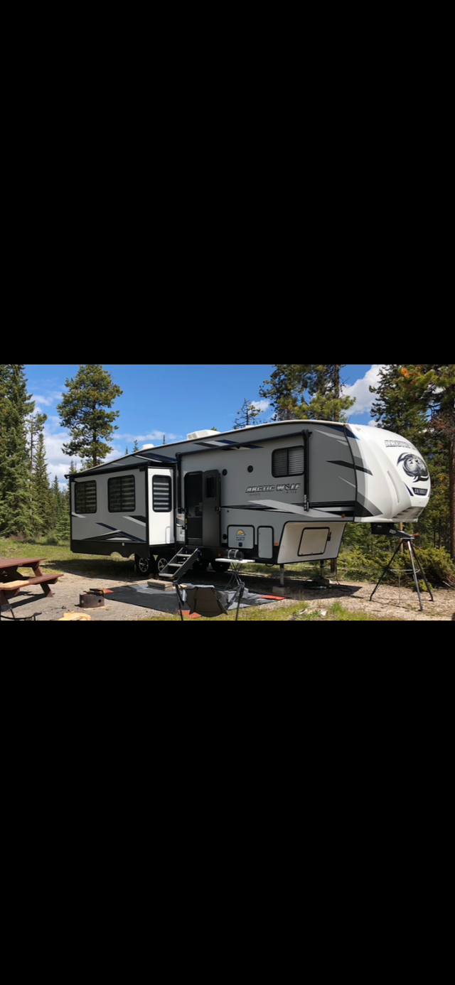 FOR SALE - 2022 ARCTIC WOLF 291RL FIFTH WHEEL. 32' LONG. EXCELLENT CONDITION USED VERY LITTLE. LIKE NEW. NICE OPEN LAYOUT. UPGRADED TIRES. COMES WITH SLIDE OUT AWNING COVERS. LARGE TV. FIREPLACE. MICROWAVE. RECLINER CHAIRS. 400 WATTS SOLAR POWER. RENOGY SOLAR CONTROLLER. 2000 WATT RENOGY INVERTER. 2 - 6 VOLT DEEP CYCLE BATTERIES. AUTO LEVELLING. DROP DOWN REAR CARRIER. LOTS OF STORAGE INSIDE AND OUT. BEAUTIFUL UNIT. NO GST!! 780-817-0623. HINTON. $67,500 OBO.