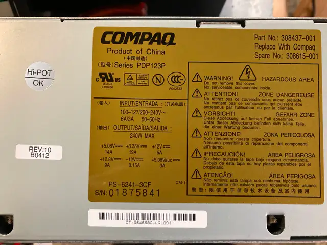Genuine HP/Compaq 308437-001 240W ATX Power Supply Unit PSU For Evo D330 D530 Systems Compaq Part Numbers: 308437-001, 308615-001 Model Numbers: DPS-240EB, PDP-123P, PS-6241-3CF