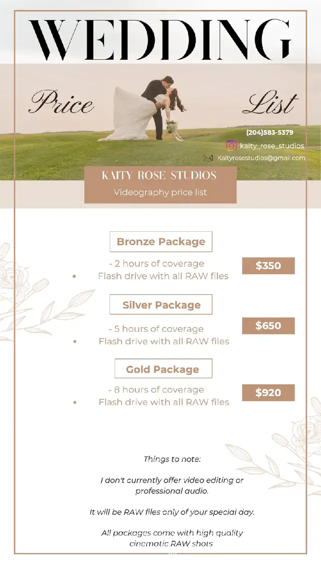 Photography and video! Please email me at kaityrosestudios@gmail.com if interested.