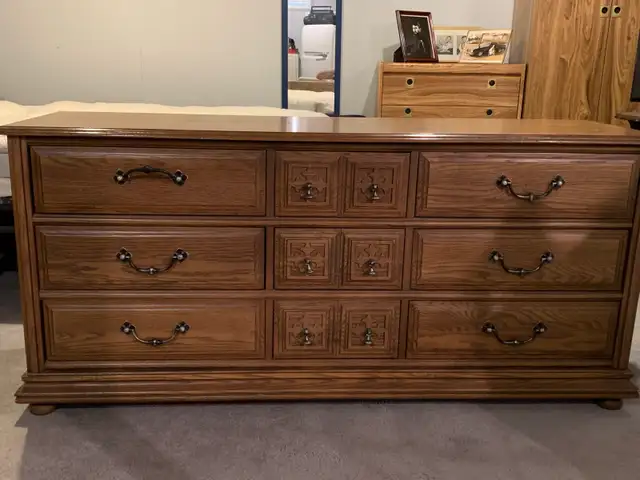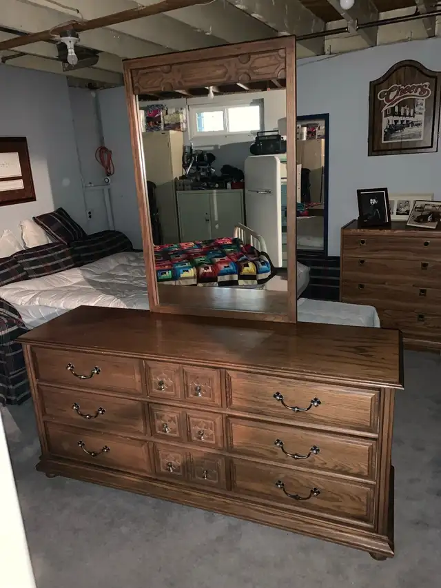 9 drawer wooden Kroehler dresser with adjustable mirror for sale. Excellent condition, non smoking home. Dresser measurements