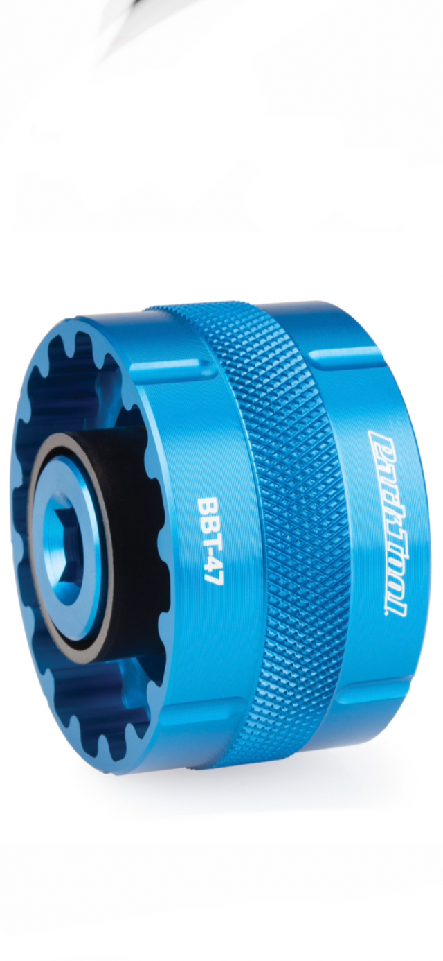 Precision CNC machined dual-sided aluminum tool for the installation and removal of 12- and 16-notch external bearing bottom brackets. Anodized for easy identification and featuring a ratchet/torque wrench compatible 3/8" drive.