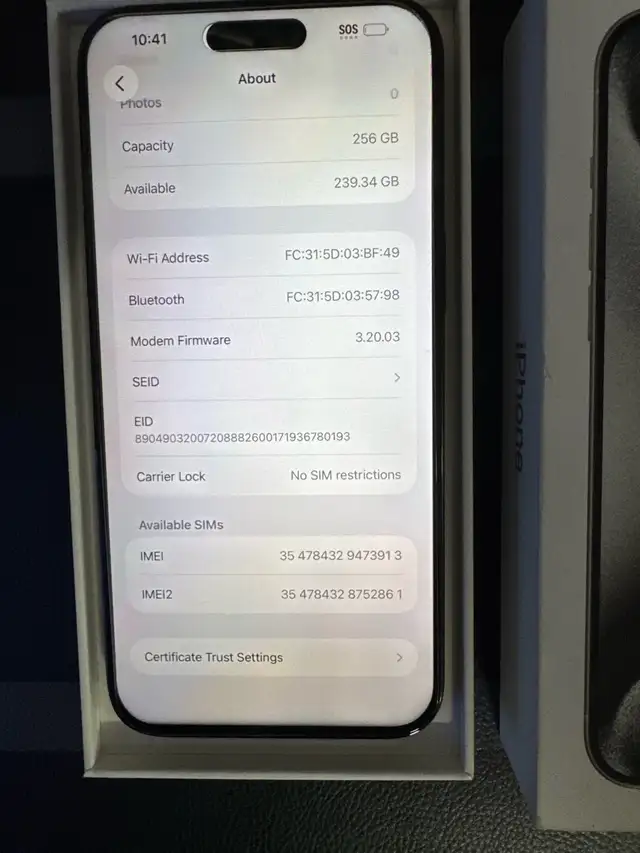 New Iphone 15 Pro Max - 256gb - Titanium - 100% battery (Mint condition) Box/Accessories Included