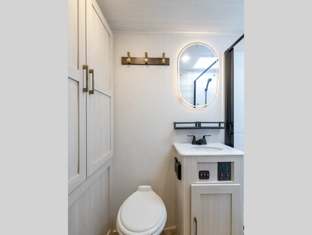 Rear Bath DESERT CANYON INTERIOR COLOR; SURVEYOR TURN KEY PACKAGE; 2026 DIAMOND DEALER PACKAGE - ADDITIONAL 200 WATT SOLAR PANEL; THEATER SEATING IPO SOFA; DRY WEIGHT - 5,953