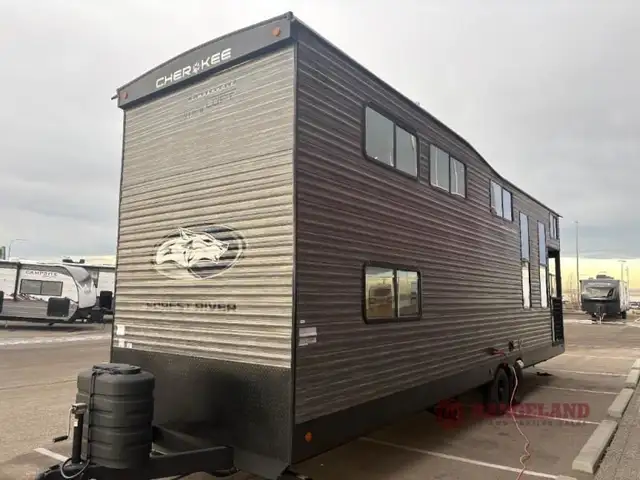 Enjoy comforts of home wherever you decide to roam in a Cherokee Timberwolf destination trailer by Forest River. Each trailer is made with quality construction materials, like with all Forest River products, plus you'll find convenient exterior features to make extended stays easier than ever. You will love the interior with its cozy sleeping arrangements, full bath and kitchen amenities, plus plenty of storage spaces for food, clothing, gear and more! With mini loft and full-size destination trailers available, you're sure to find a Cherokee Timberwolf that fits your needs!