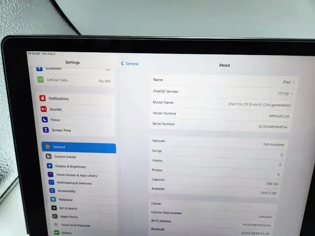 $580 iPad Pro 12.9” 2nd Wifi/Lte 256gb 3 Months Warranty W/Charger And Case