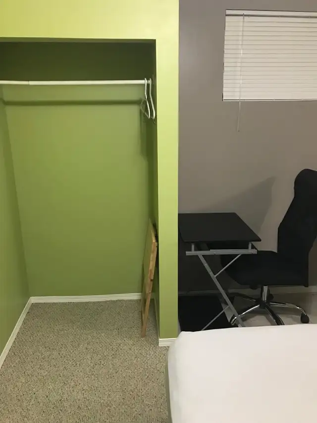 One block to main campus, with powered off street parking. Each suite is private, with 2 rooms: a bedroom and a full kitchen. The bathroom is shared, but cleaned 1xweek. All utilities are included. Laundry is available. One person per suite. Quiet and clean. No strong fragrances. A $200 security deposit is required for booking.