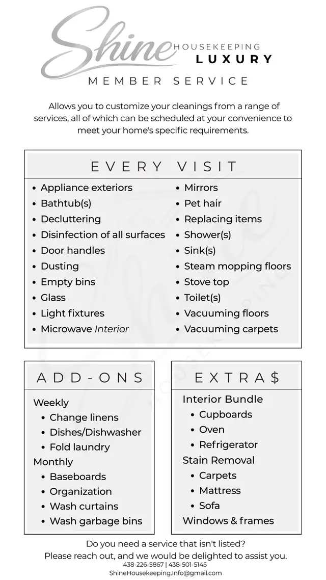 438-226-5867 | ShineHousekeeping.Info@gmail.com