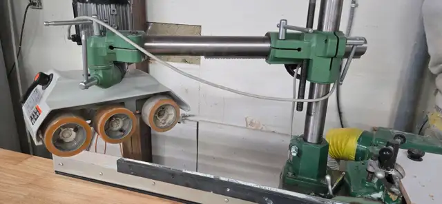 2 wood shapers for sale with leveling working table, includes feeder.
