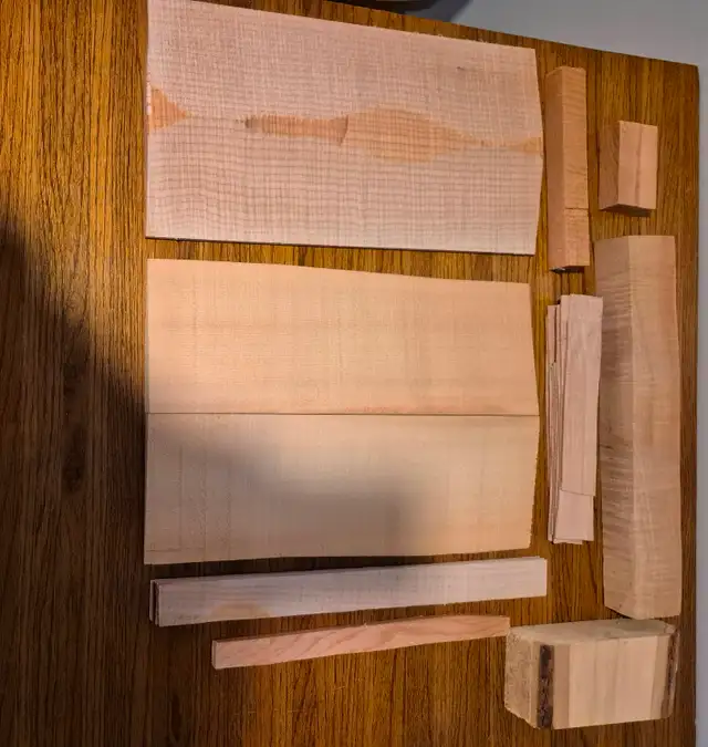 Complete package of wood needed to make your own violin. Maple back, ribs and neck. Spruce top. Complete with pattern. Call or text 204-380-2050