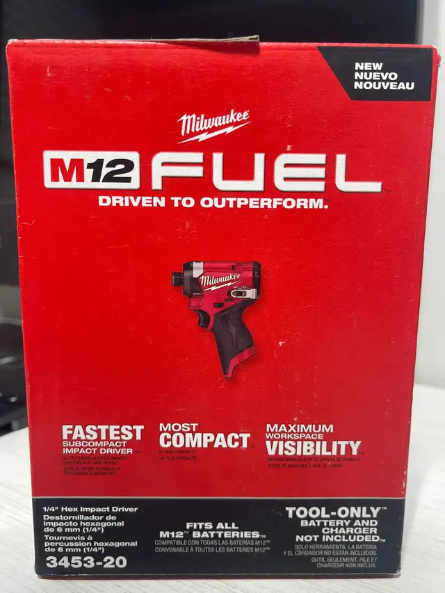 The MILWAUKEE M12 FUEL 1/4in Hex Impact Driver is the Fastest Subcompact Impact Driver, the Most Compact, and provides Maximum Workspace Visibility. The POWERSTATE Brushless motor delivers the fastest driving speeds in the subcompact class for unmatched productivity. At only 5in long and 7.6in tall (with M12 CP 2.0 Ah battery), this solution is the most overall compact impact driver in class, allowing greater access in tight spaces and overall portability. Tri-LEDs surround the bit accessory with brighter lights and less shadows providing maximum workspace visibility. MILWAUKEE REDLINK PLUS Intelligence delivers top of the line thermal performance allowing more work to be completed. Get all day runtime when paired with the MILWAUKEE M12 REDLITHIUM battery pack. The M12 FUEL Impact Driver is part of MILWAUKEE M12 System which is fully compatible with over 125 solutions