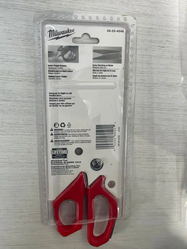 he Milwaukee Jobsite Straight Scissors feature all-metal handles for added durability and up to 10X Longer Life. The construction scissors include a smooth cutting edge for burr-free cuts. Bolt Lock Technology prevents blades from loosening to ensure precision cutting. For added precision, ruler markings are on the front of the blades. Milwaukee backs these durable scissors with a limited lifetime warranty.