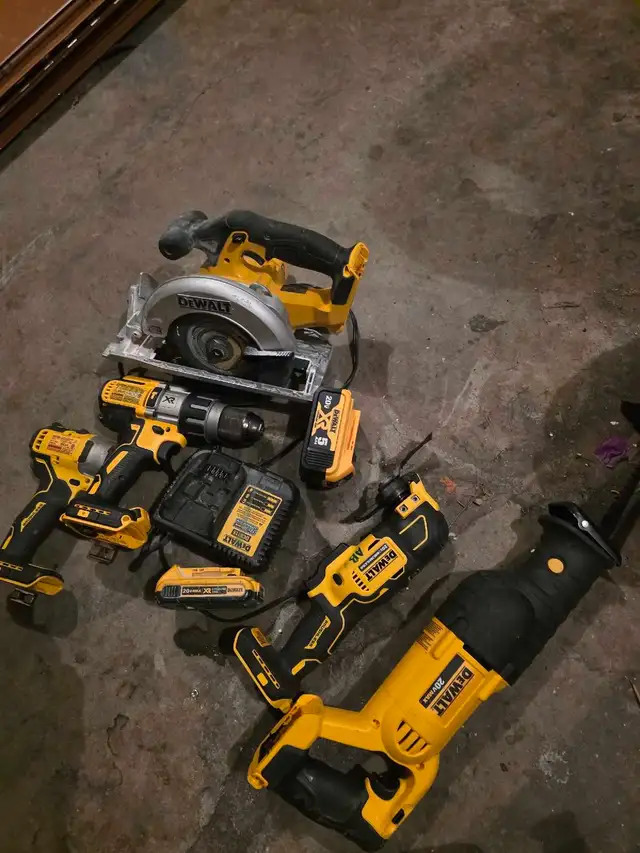 Have one drill one impact both 20V Max Xr, saw, sawzell, flush cutter, charger, 2 batteries 1 is 2ah other is 5ah. Plus blades if ad is still up still available message me or text me at 780-566-8999