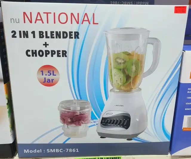 The NU National 2 in 1 Blender Chopper is a versatile kitchen appliance designed for blending and chopping tasks.Type: 2 in 1 Blender and Chopper