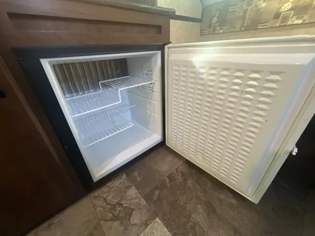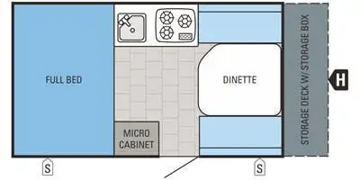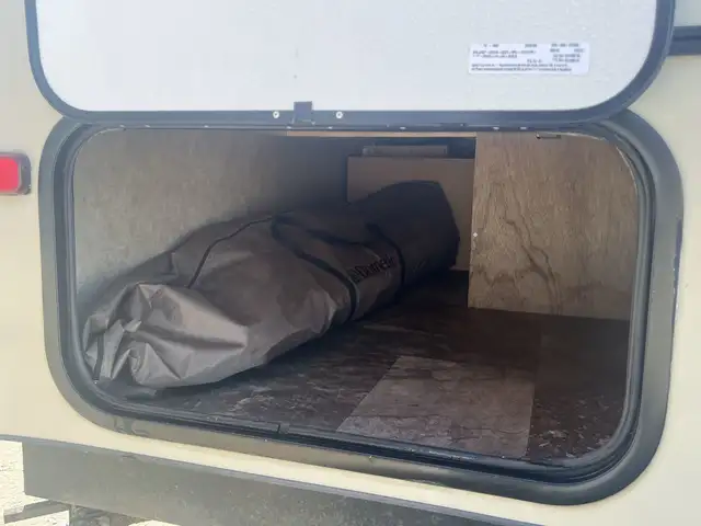 On the exterior you get an elegant look on this amazing camper, tongue jack and storage are among a couple of upgrades on the outside. On the inside you get a stove, fridge, dinette, sleeps 4 with bed.