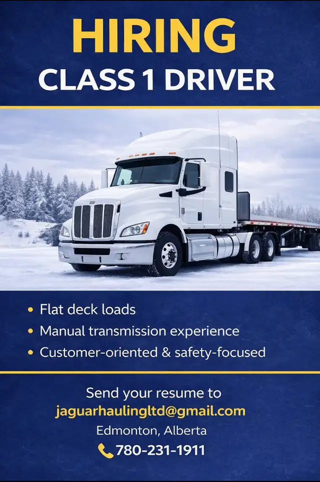 Jaguar Hauling Ltd. is currently looking to add one Class 1 driver to our team.